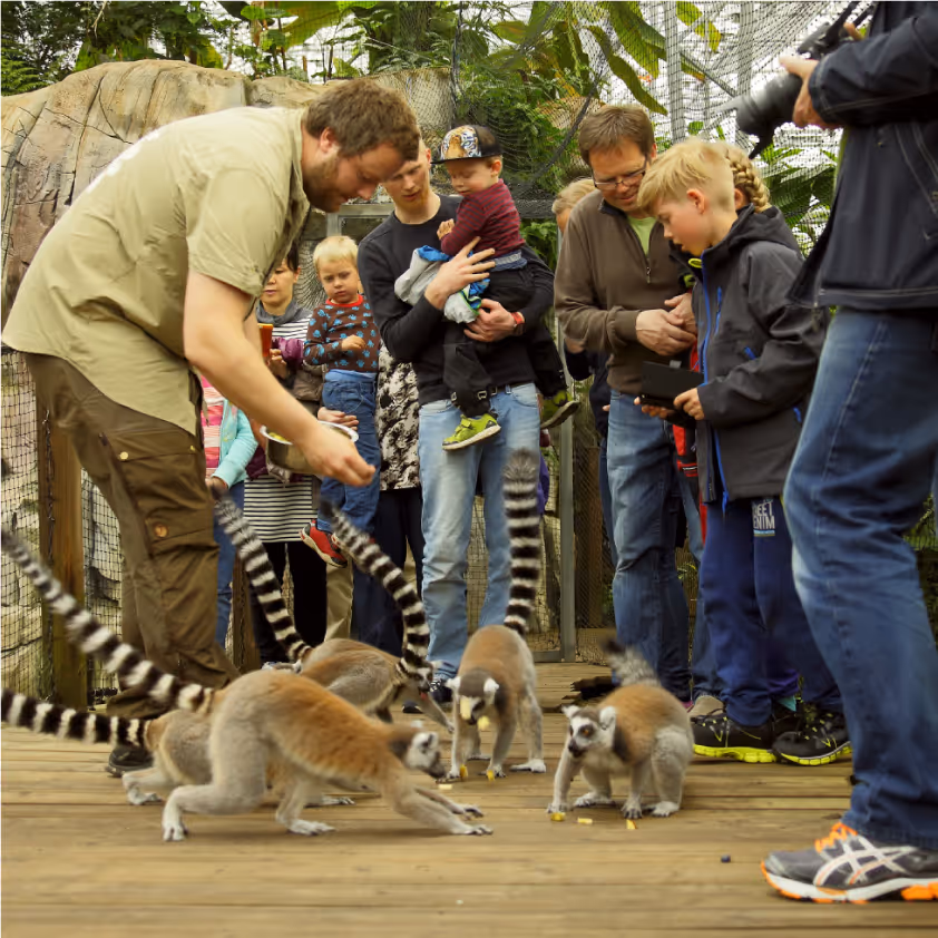 Bursdagspakken inneholder pizza og drikke i tillegg til en uforglemmelig omvisning i parken. Selskapet får holde slange og matet aper på veien. Dagsbilletten er inkludert så hvis dere vil kan dere bruke parken hele dagen.