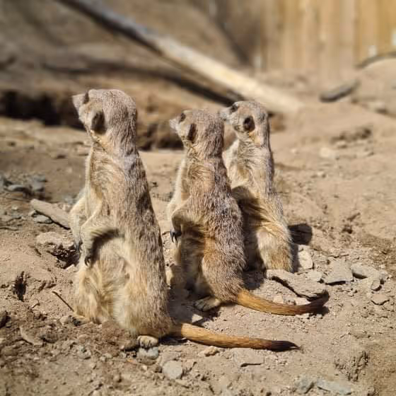 Hos surikatene er det aldri kjedelig - her er det alltid noe som skjer. De leker, krangler, jobber og leter. Noen skal finne mat, noen er barnevakt, noen holder vakt mens andre bare ligger å sover. Len deg mot gjerdet og studér den aktive flokken og hvordan de lever.
