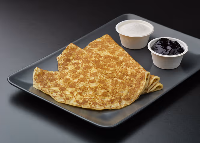 - 3 pannekaker med tilbehør