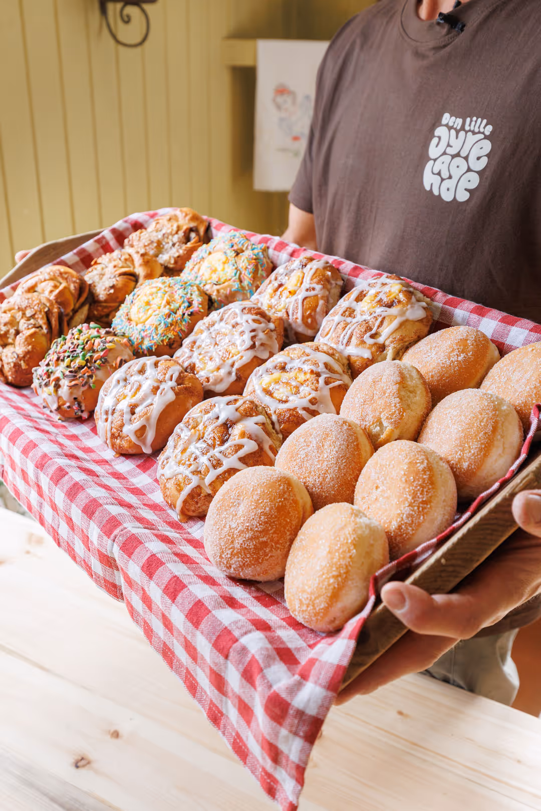 I vår vakre gårdskafé kan du få kjøpt tradisjonelle bakevarer, kaldt eller varmt drikke og snacks - laget og servert med kjærlighet.
